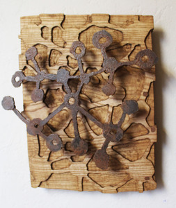 Unieke wandobjecten van Maarten Donders, waarin organische vormen en abstracte symboliek samenkomen. Een balans tussen chaos en orde, met materialen zoals hout, metaal en keramiek.